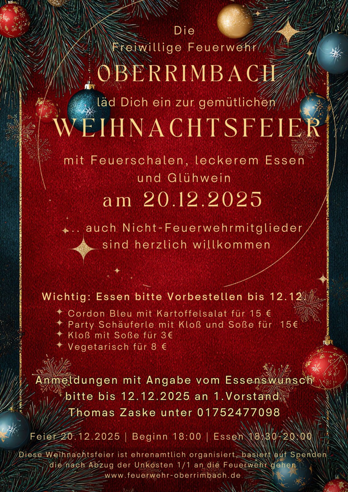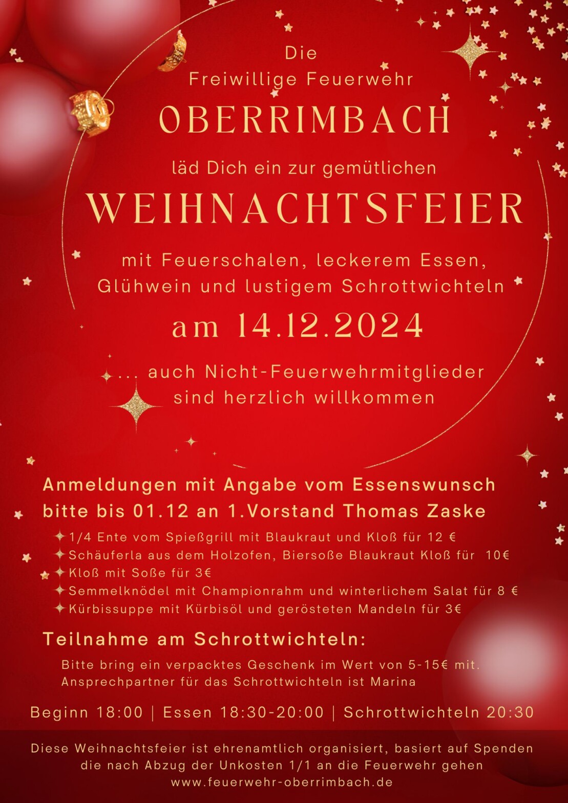 Einladung zur Weihnachtsfeier in Oberrimbach